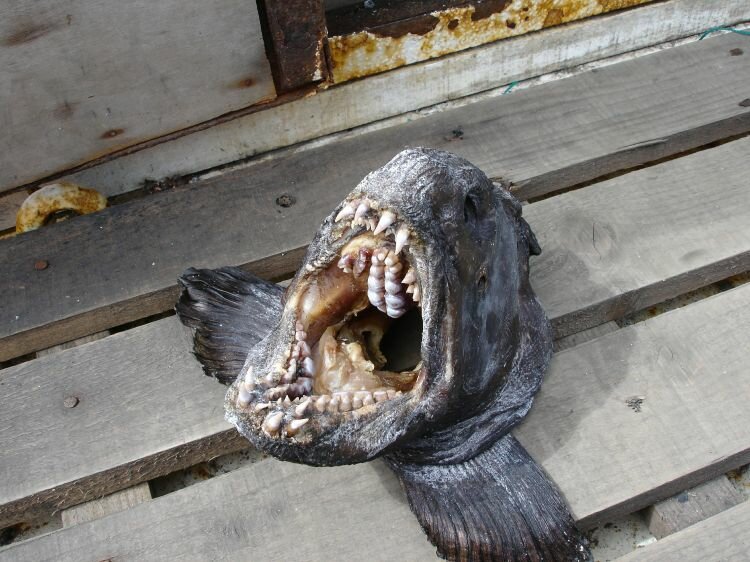 Дальневосточная зубатка | Северные моря Тихого океана | 112 см, от 20 кг |