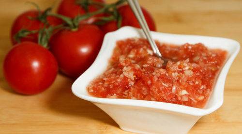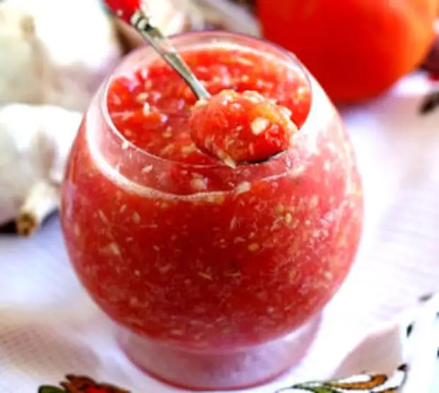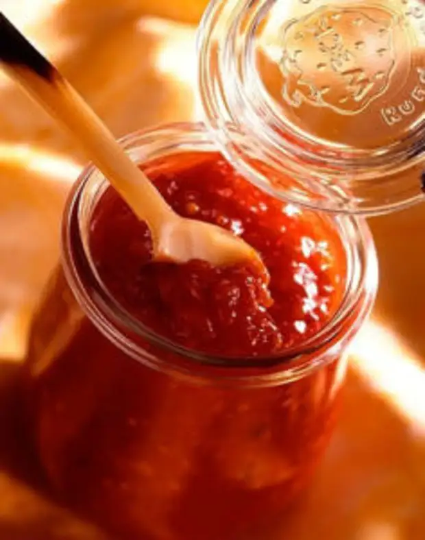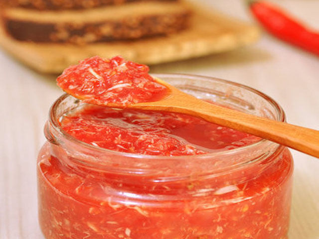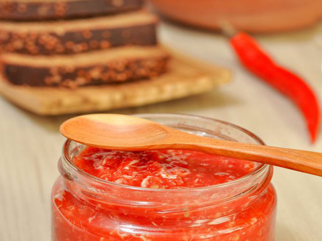Чтобы удивить гостей необычной приправой, рекомендуем вам обратить внимание на данный рецепт. Эта заготовка получается очень аппетитной и долго хранится в банках. Для ее приготовления нам понадобится:
