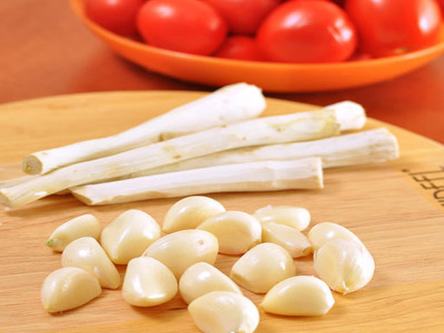 • помидоры — 1 кг, • очищенный чеснок — 100 г, • корень хрена — 100 г, • соль — 1 ст л, • сахар — 1 ст л,