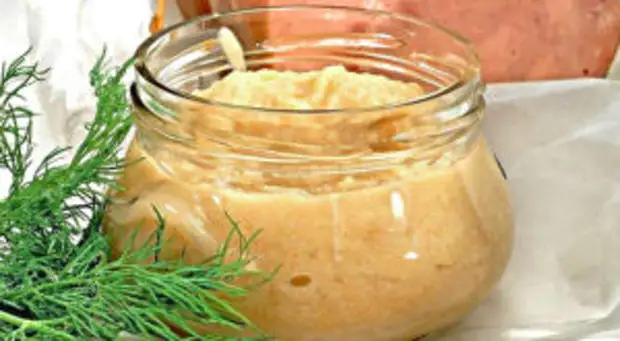 По этому рецепту получается жгучая светлого цвета приправа, которая хорошо подходит к мясным блюдам и наваристым супам. Помимо хрена, в рецептуре присутствуют лишь лимонная кислота, соль и сахар.